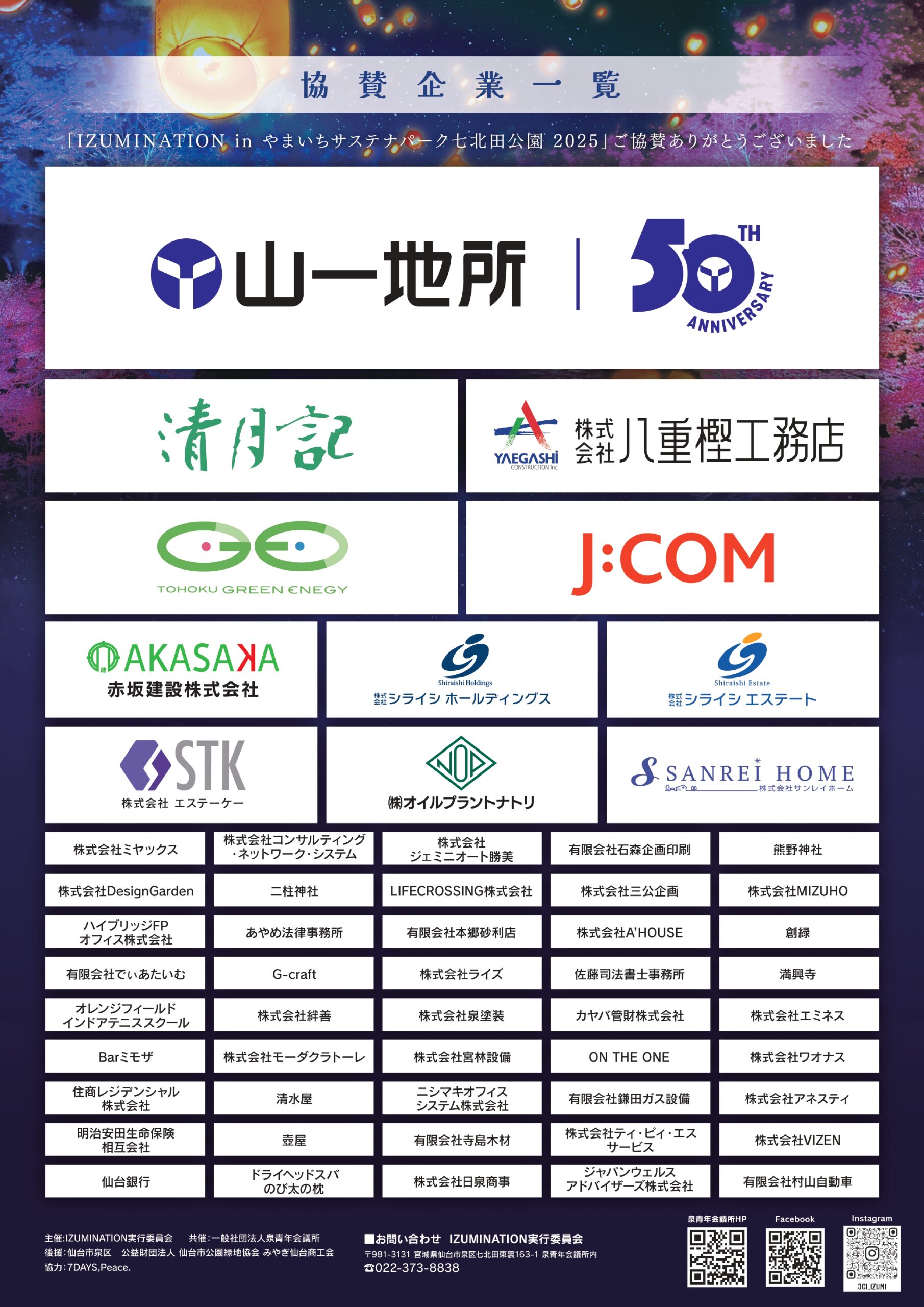 泉青年会議所が開催する「IZUMINATION in やまいちサステナパーク七北田公園」にオレンジフィールドも協賛しております。