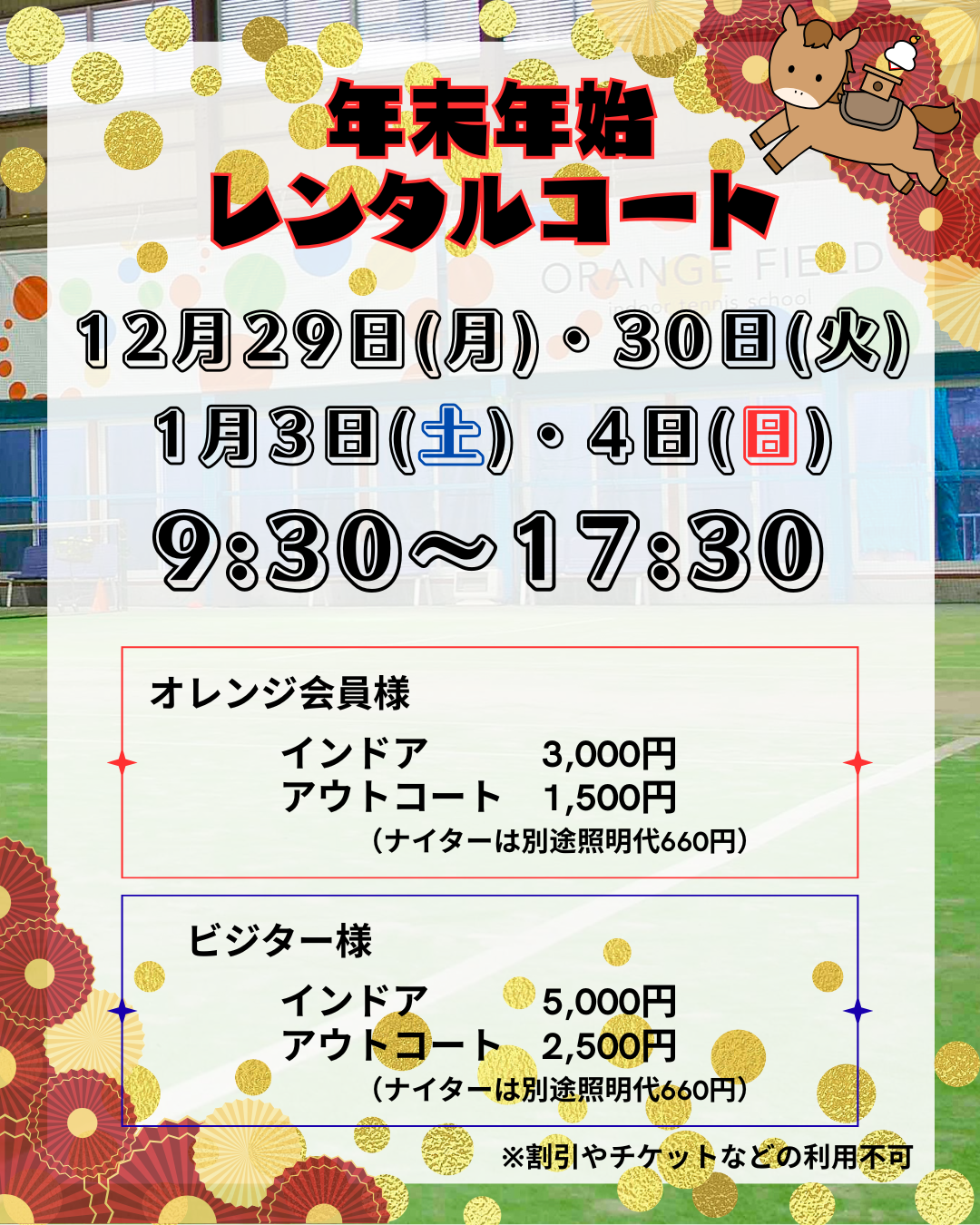 年末年始もテニスをしたい!!運動をしたい!!という方に!!